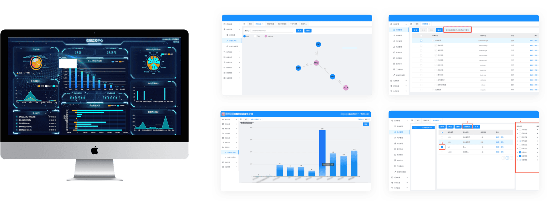 大数据应用服务平台实现了征信数据的管理维护,家族氏谱的关联管理及查询服务,提供征信信息、不动产信息的便捷查询功能。系统界面亲和,操作简单,功能完善。主要功能分为以下几大模块:征信大数据、家族氏谱管理、档案管理、系统权限管理、系统参数管理,以及数据加工和数据监控功能,为客户实现信息线上化提供了工作便利,简化了作业流程,节约了工作流程时间。