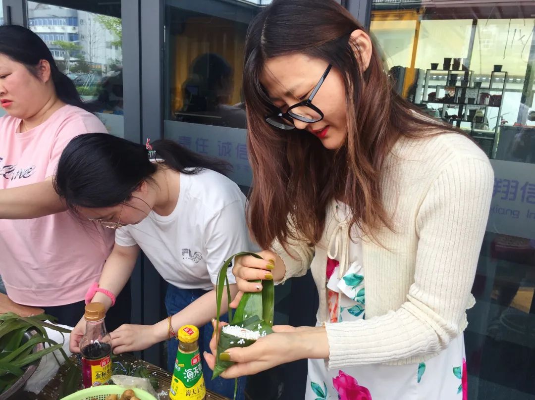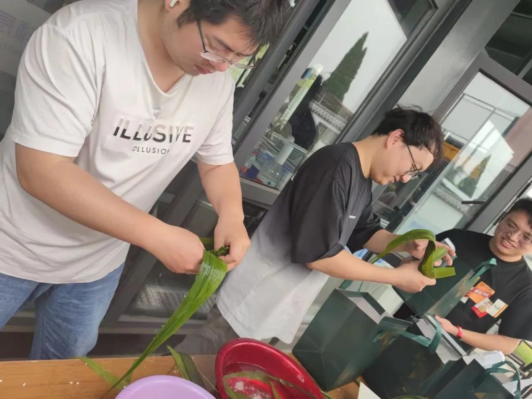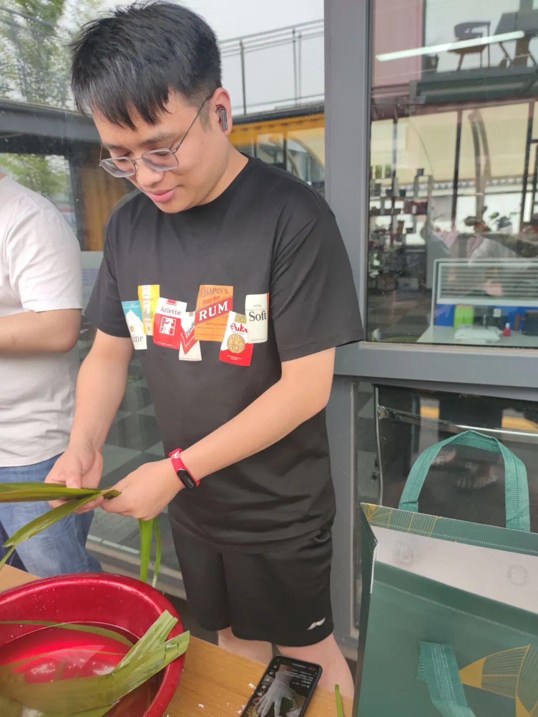 男生们也不遑多让,别看平时安安静静的IT程序员山水不露,认真包起粽子来,可不是闹着玩儿的!