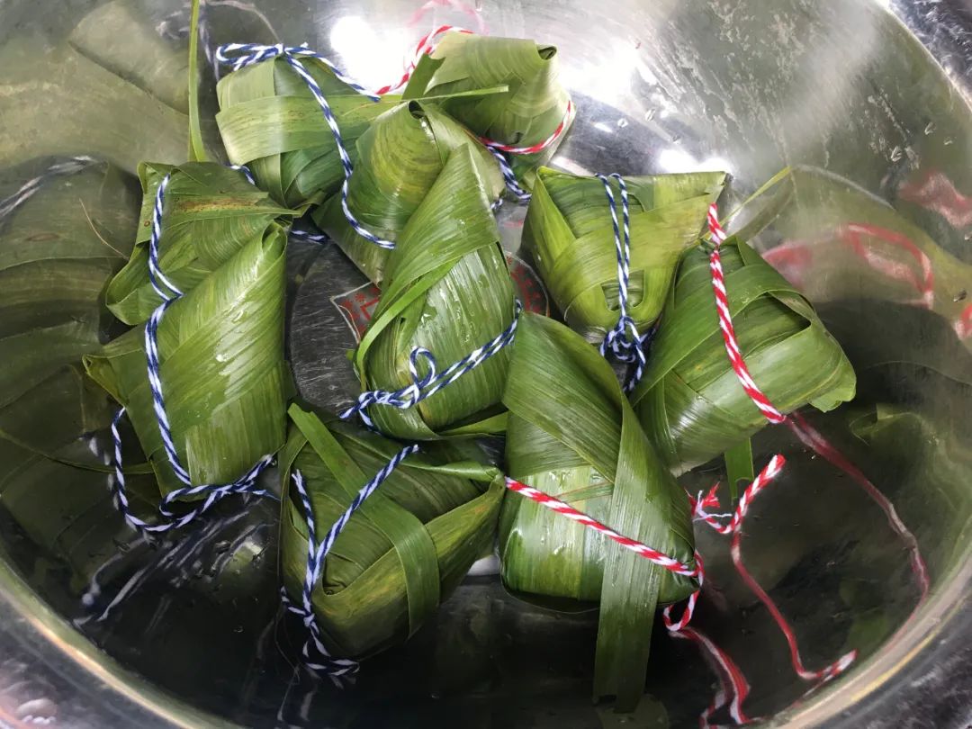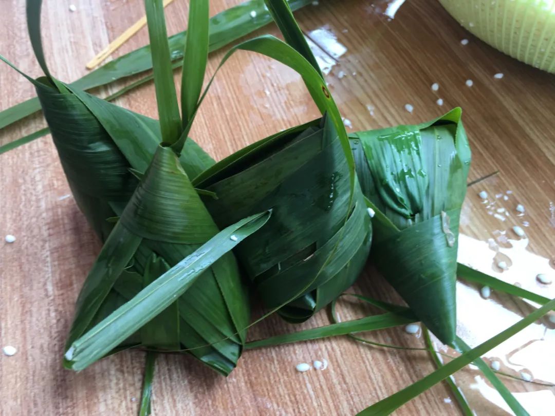 测试小姐姐更牛,昨晚自己在家做了两根竹针, 包的新型无绳粽子也是平生所未见呢!